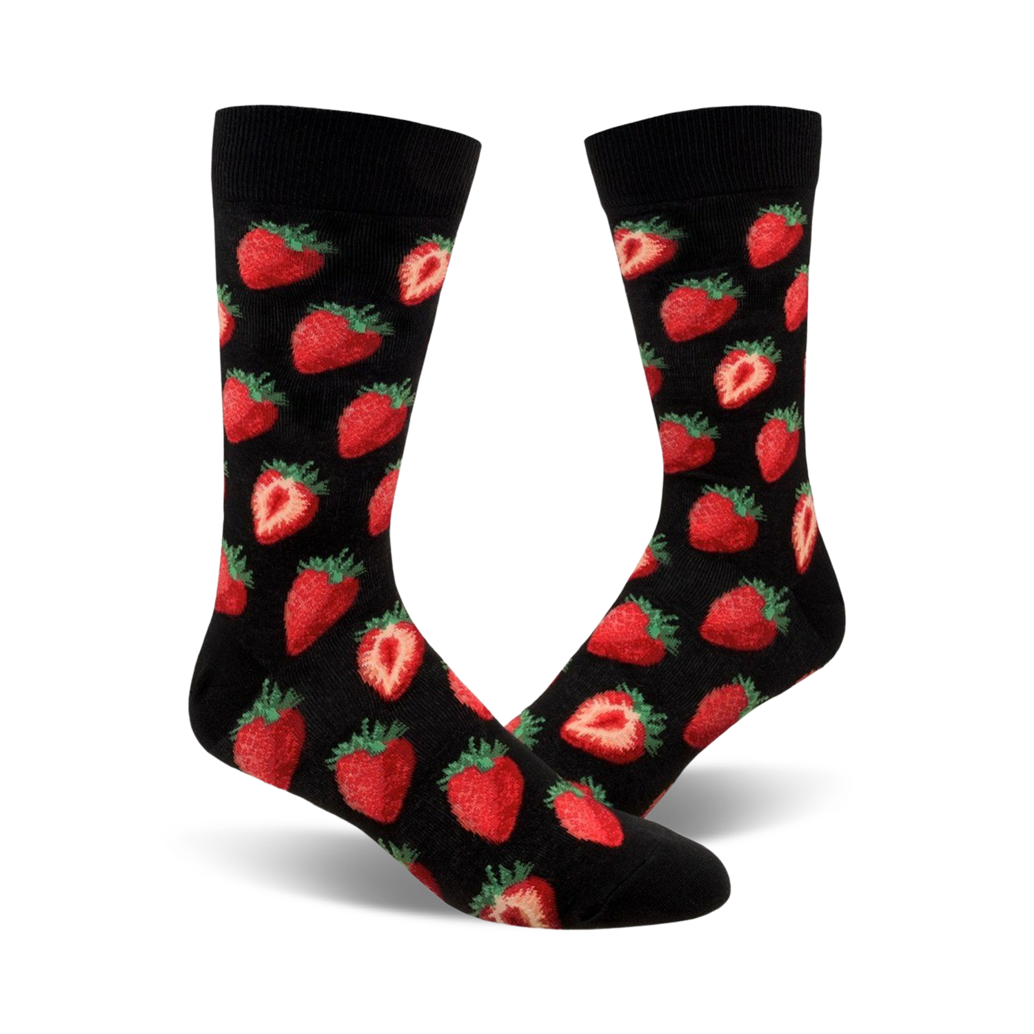 Calling all berry fans and fashionistas! Meet our "Sweet Strawberries" the berry best socks you'll ever own! Picture this: juicy red strawberries with perky green leaves against a backdrop of sleek black. Slip into these crew socks, and your feet will thank you with each fruity step. They'll keep your toes cozy while making a sweet statement wherever you go. Think of them as a fun way to satisfy your sweet tooth without the calories!