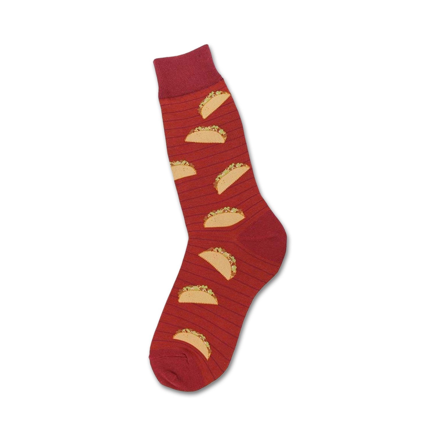 Taco 'bout tasty feet! These crew socks feature a zesty pattern of tacos, complete with lettuce, tomatoes, and cheese. When life gives you lemons, wear tacos on your feet. Whether you're a taco Tuesday enthusiast or just love all things Mexican, these socks add a touch of fun and flavor to your everyday style.