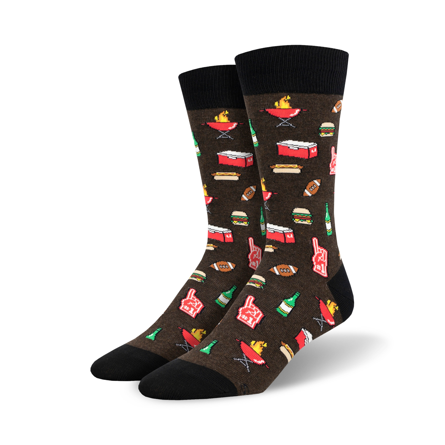Tailgaters Delight socks are the perfect way to show your team spirit and love of all things BBQ. These crew socks feature a festive pattern of footballs, beer bottles, foam fingers, barbecue grills, hamburgers, and hot dogs. Whether you're hitting the stadium or just firing up the grill in your backyard, these socks will keep your feet feeling and looking cool all day long. And remember, regardless of how your team does, you can always count on having a good time at a tailgate party!