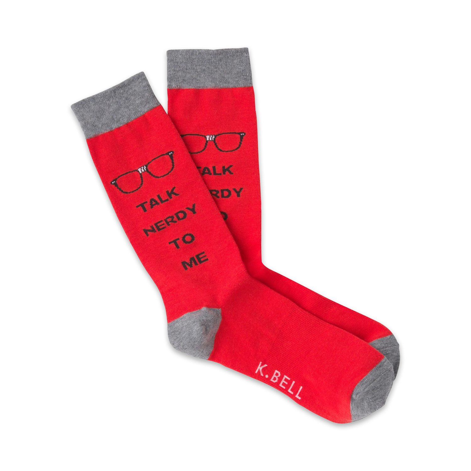 Are you made of copper and tellurium? Because you're Cu Te! If you love yourself acute nerd, these socks are right up your alley. This funny pair of red and gray crew socks feature a pair of nerdy glasses held together with tape with the phrase "Talk nerdy to me" below them. Channel your inner geek and get yourself a pair of these cool socks!