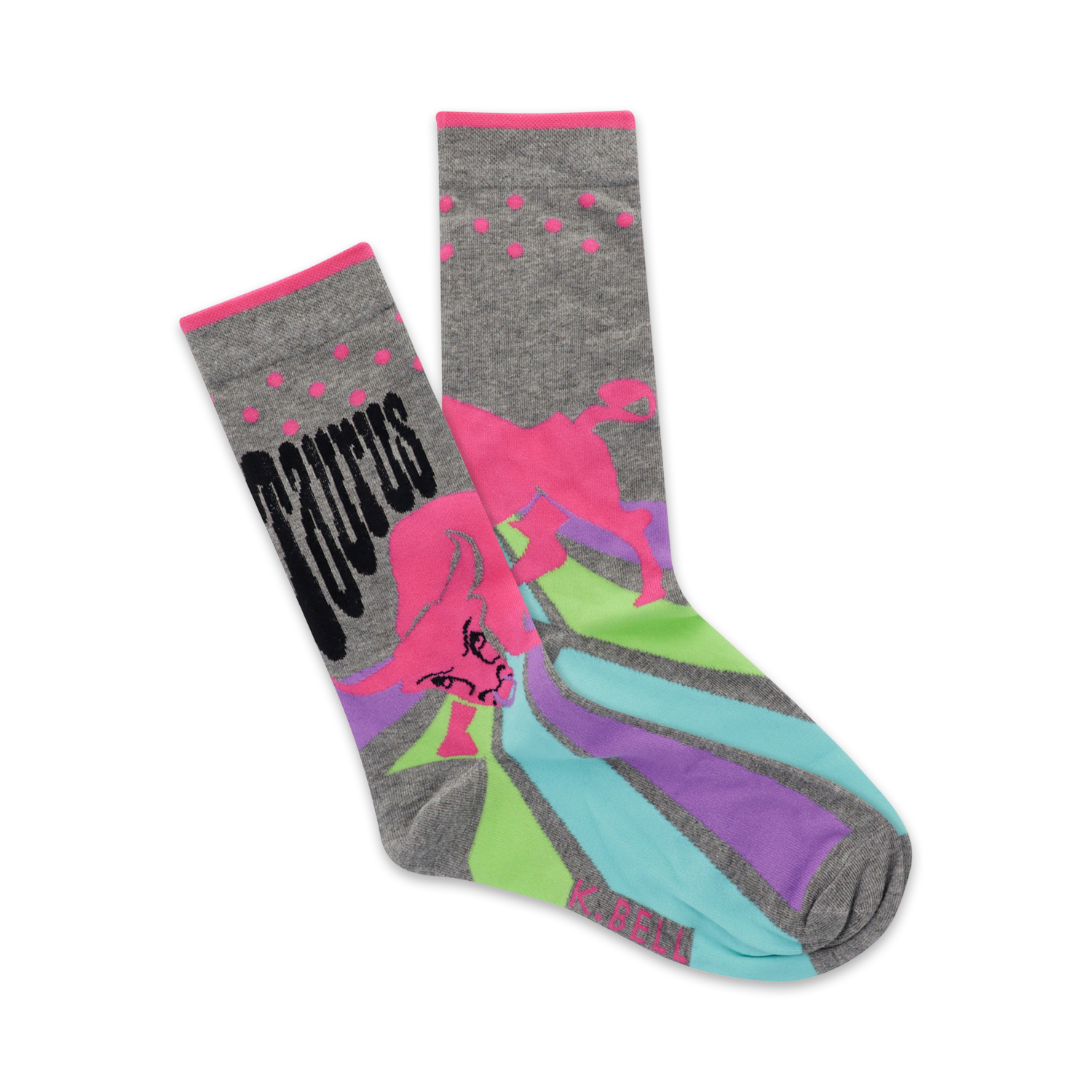 You heard of showing your Taurus? How about wearing your Taurus? These Bull-ish socks have got a "cow-lossal" personality and style that's sure to take you places. And just like Tauruses are known for being stable and reliable, these gray crew socks are made to last, with a fun and colorful pattern of pink and purple bulls with yellow horns and blue and green stripes that'll never go out of style.