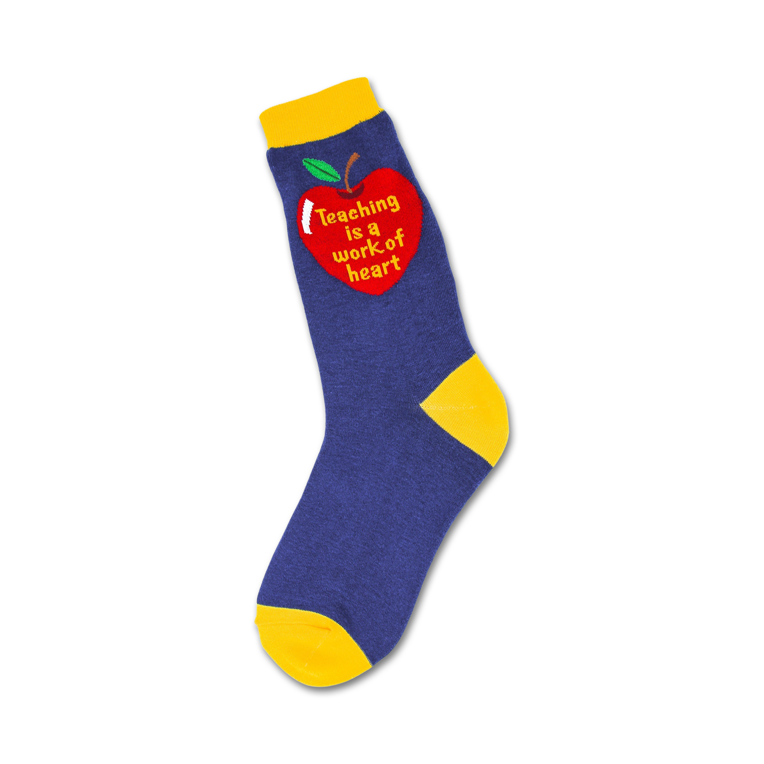 Who needs a boring old heart when you can have a 'Teaching Heart'? These dazzling blue socks with a bright yellow toe, heel, and top have a captivating red heart with a verdant green leaf. Featuring the words 'Teaching Is A Work of Heart', these socks will make your feet dance with joy while you inspire young minds, reminding everyone that the power to educate and nurture comes straight from your heart. Prepare for a round of applause and admiration for your stylish choice of classroom attire!