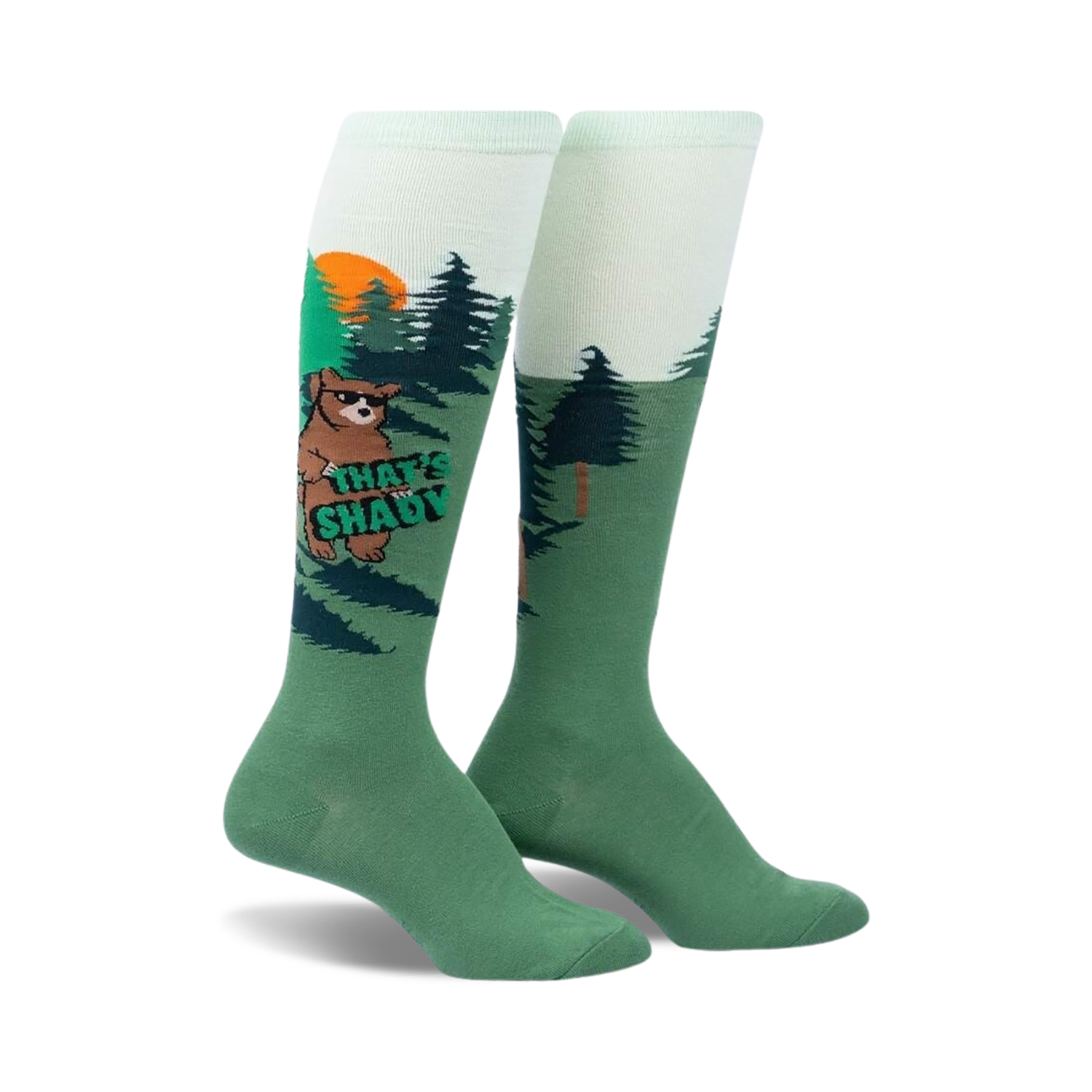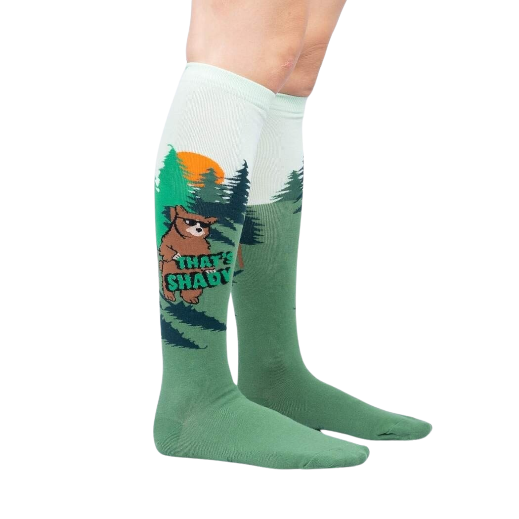 That's Shady knee-high socks are the coolest shades in the forest. Forget those grizzly old bear puns, these shades sporting bears are the epitome of chill. Snuggle up with a good book and some cocoa or strut your stuff at the next camping trip. No matter how you wear them, these socks won't bear you wrong!