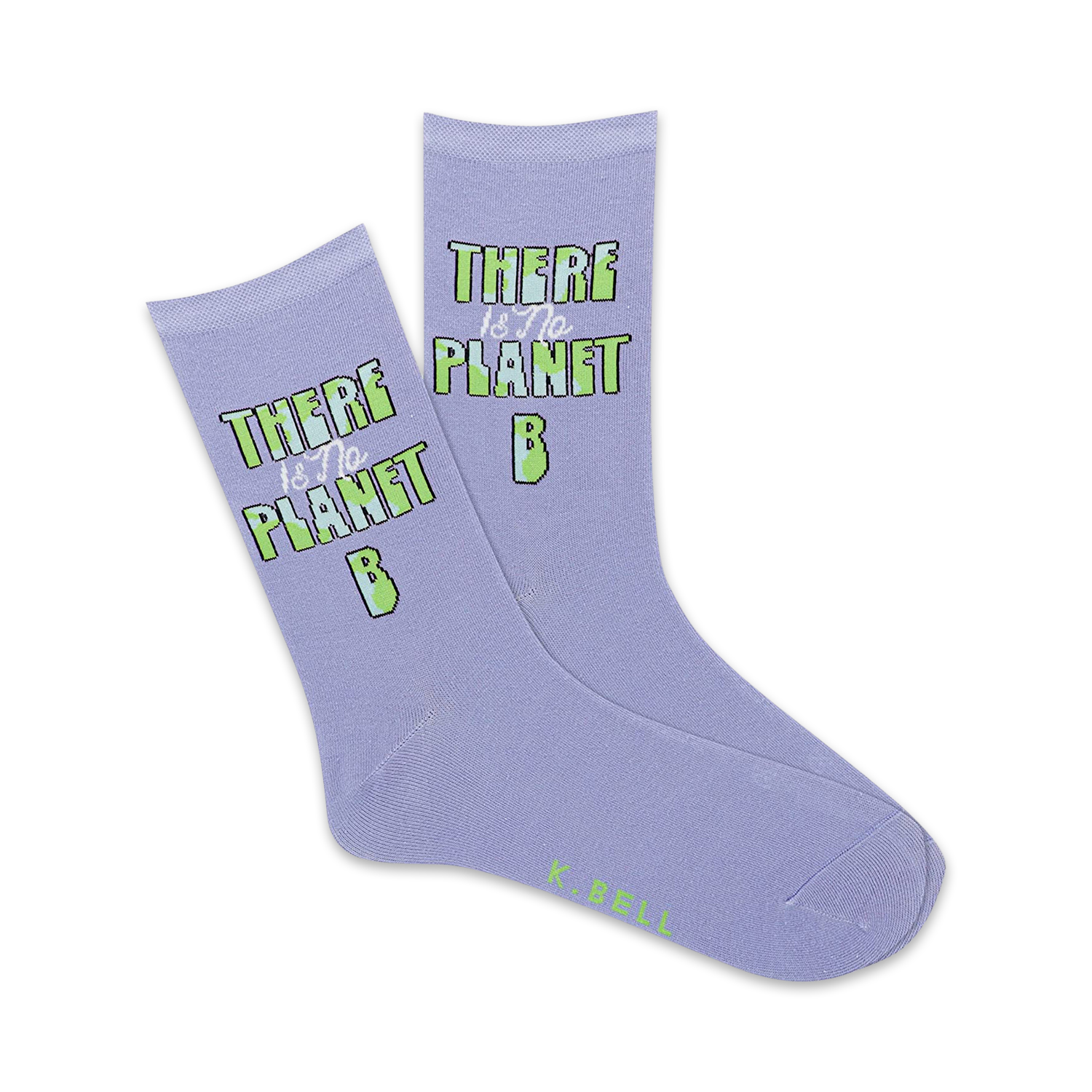 Say hello to "There Is No Planet B" socks! These socks are a lavender dream, featuring "There Is No Planet B" in lime green, serving as a reminder that we only have one home. These aren't just socks; they're a statement of your commitment to protecting our Earth. Plus, they're wicked comfortable, so you can strut your stuff while saving the planet.