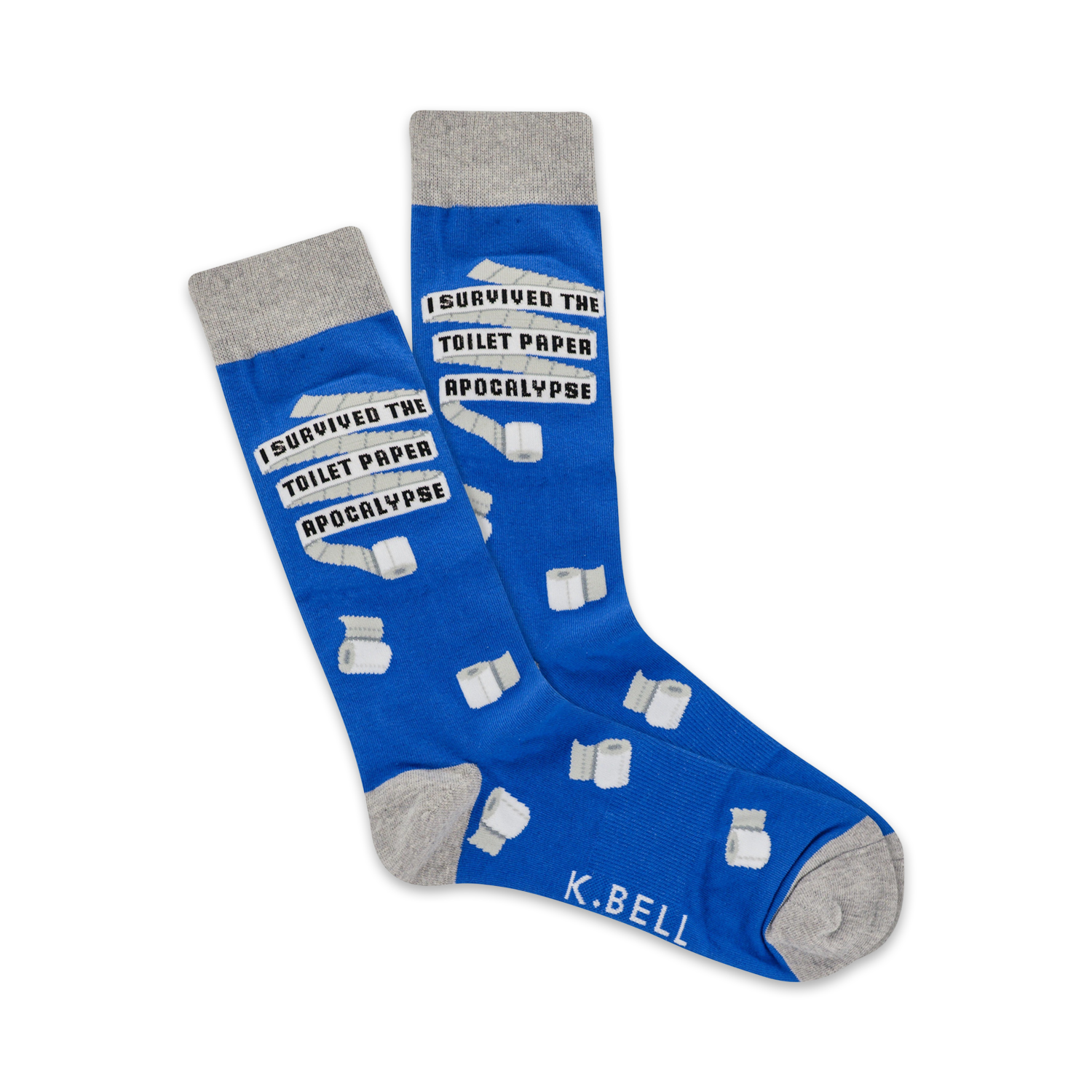 In a world where toilet paper became gold, legends rose from the ashes of empty shelves. Meet the Toilet Paper Apocalypse socks, your comfy crew mates through the great TP trials. Made for men with a soft plush feel and a little reminder of resilience knitted in 'I survived the Toilet Paper Apocalypse'. A tribute to the pandemic warriors, one sock step at a time.