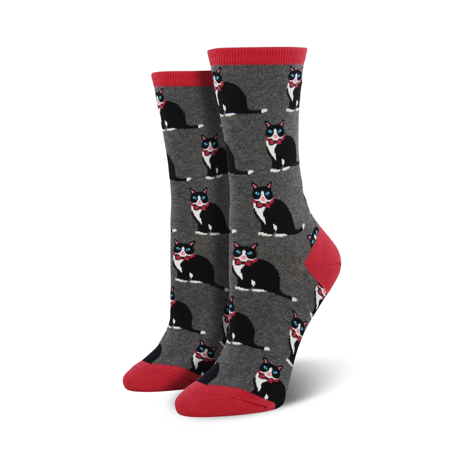 Step aside, boring socks. Make way for the crew that's anything but cat-tastrophe! Picture this: a parade of dapper black cats strutting their stuff in adorable red bow ties against a gray backdrop. Tuxedo Cats socks are paw-some for adding a dash of feline flair to your everyday style. Plus, you'll be supporting a good cause with each purr-chase - a portion of the proceeds goes to helping cats in need. So slip into these socks and let your feet do the meowing!