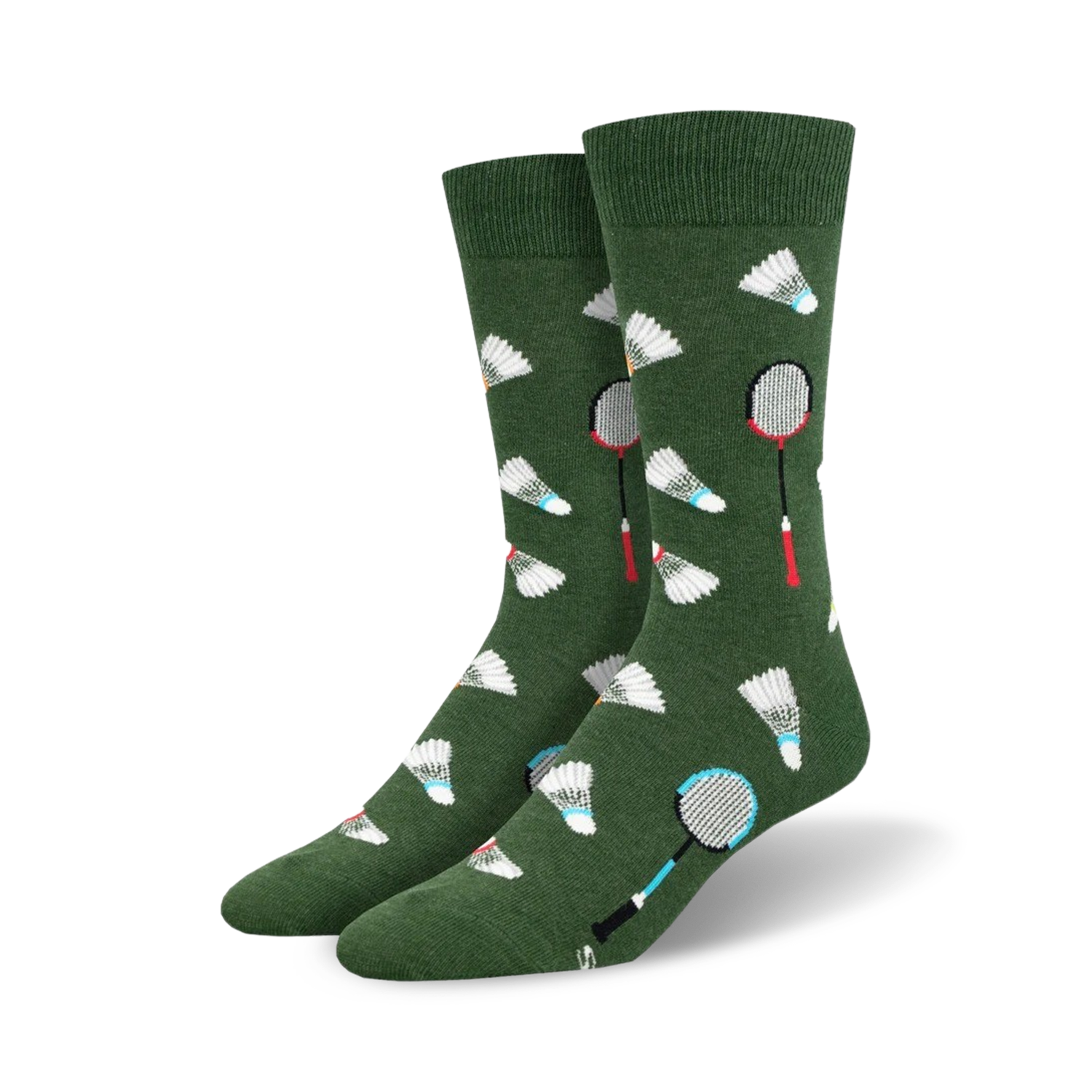 Get ready to ace your style game with our "What A Racket" badminton socks. Step into this court-inspired design featuring red and blue badminton rackets and shuttlecocks flying over a dark green background. These crew-length socks are sure to make a serve-ious statement on and off the court. Put on a pair of these socks and channel your inner badminton champ like a pro!