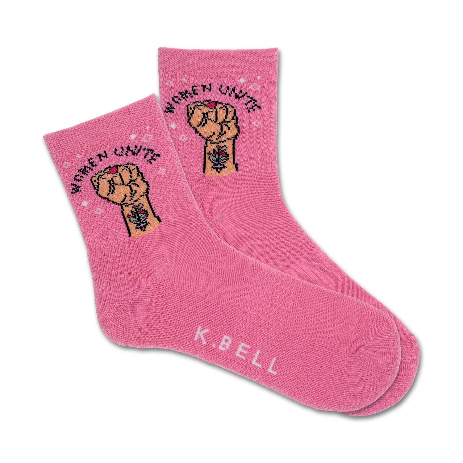 Women Unite Crew Socks: Step into a world of empowerment and unity with these striking pink socks adorned with a fierce woman's fist clutching a delicate rose. Emblazoned with the words "Women Unite" in elegant cursive, these socks are more than just a fashion statement - they're a symbol of strength, solidarity, and the incredible power of women standing together. Put on a pair and feel the surge of sisterhood course through your veins. Your feet will thank you, and so will the world.