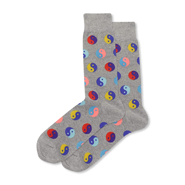 Yin Yang Socks: Find Your Cosmic Balance! Our Yin Yang socks embrace harmony and balance with their eye-catching pattern. Each sock features a captivating fusion of two interlocking circles, one black and one white, encircled by a colorful border. Choose from a vibrant spectrum of blue, green, pink, and orange to reflect your unique spirit. Step into these socks and let your feet revel in a journey of cosmic tranquility. Walk with confidence, knowing that you embody the perfect equilibrium between opposites, like a modern-day philosopher with stylish toes. Be the envy of ancient sages as you showcase your appreciation for the profound beauty of duality.
