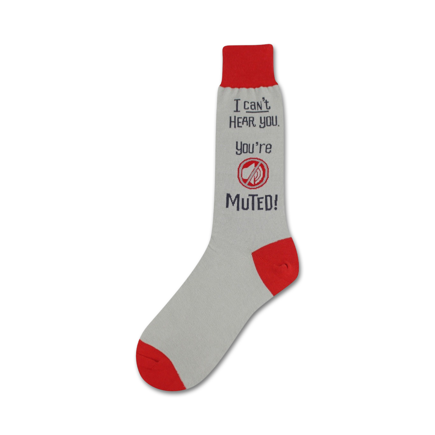 If you're tired of feeling like everyone's talking over you, put on a pair of these sassy socks that politely tell the world, "I can't hear you. You're muted!" With their gray base, red toes, heels, and tops, these crew-length socks for men are sure to get a chuckle from anyone who sees them. Available with the words "I Can't Hear You...You're Muted" emblazoned on them, these socks are perfect for anyone who's ever been on a Zoom call from a noisy coffee shop or had to deal with a particularly chatty coworker.